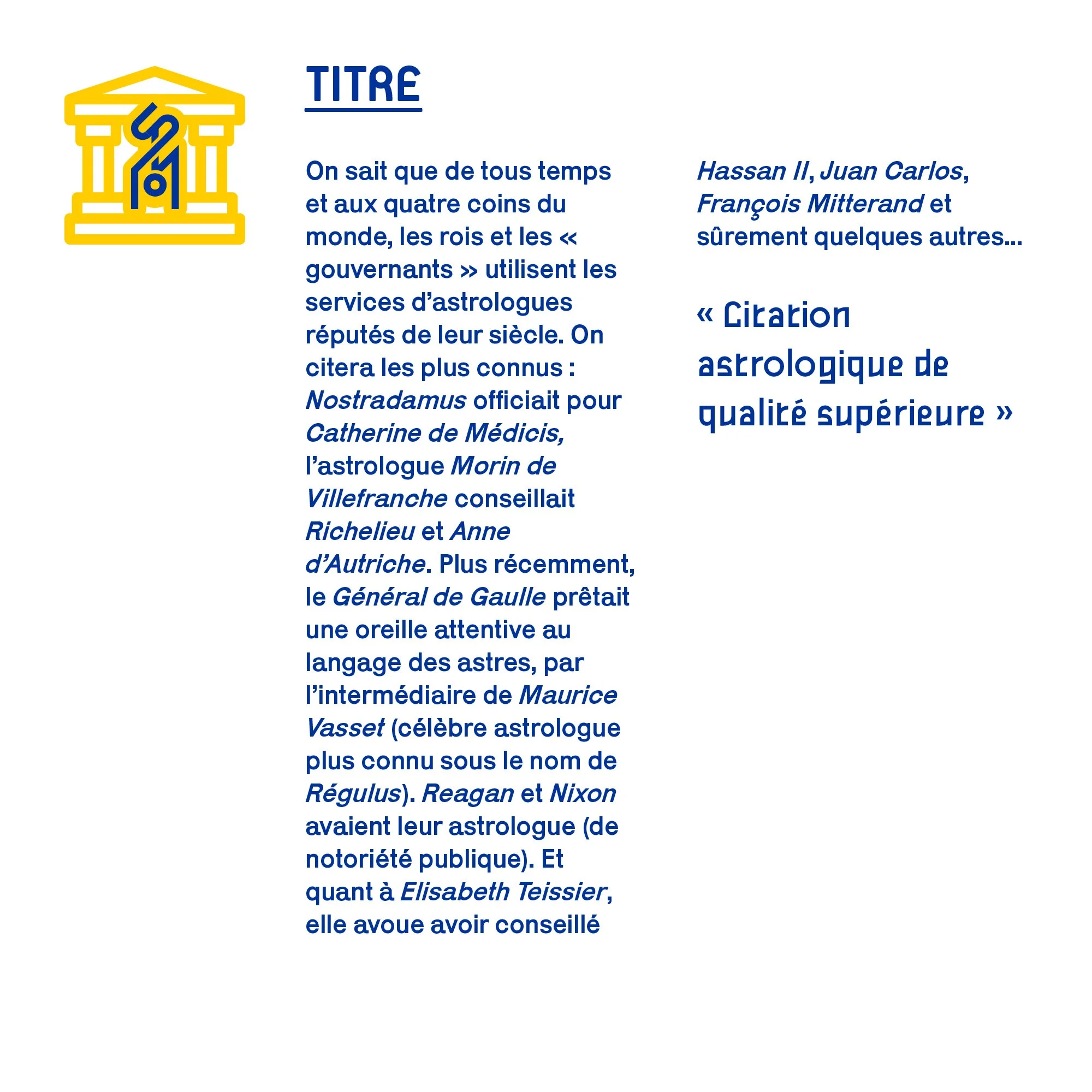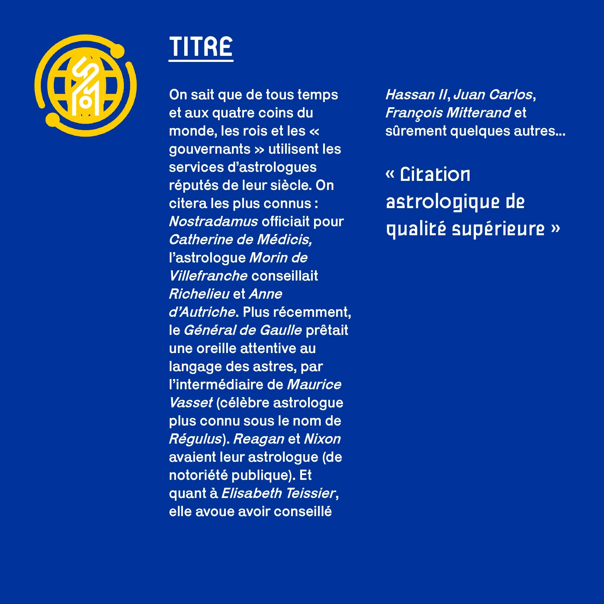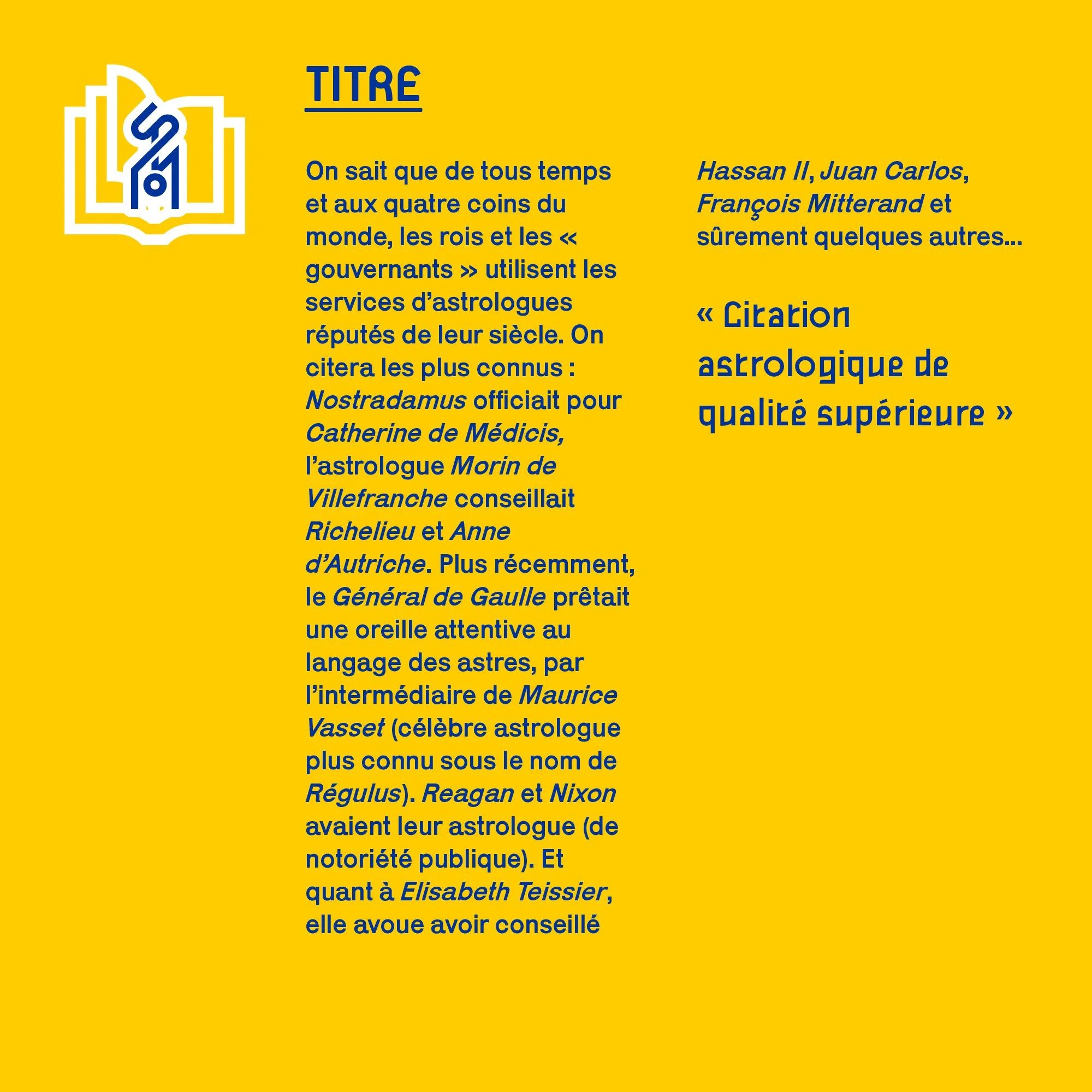 Reprenant le petit cercle du logo principal, représentant une étoile, comme élément visuel. Inspiré par les constellations dans lesquelles sont lues l’avenir.